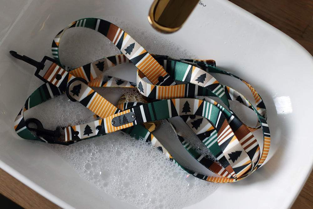 Nasze taśmy są bardzo odporne na zniszczenia mechaniczne, jak również nadruk jest bardzo trwały - ale nie oszukujmy się: warunki na psich spacerach bywają bezlitosne! Na szczęście woda nie jest największym wrogiem naszych taśm, a zatem są sposoby by przywrócić im schludny wygląd. Aby długo cieszyć się pięknymi akcesoriami - polecamy systematycznie je czyścić, aby brud, który dostaje się w najmniejsze zakamarki nie został tam na zawsze. Przedstawiamy dwa najprostsze sposoby jak to zrobić:
